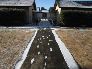 雪道を通った足あとが残ってました👣知らないうちに降っていたんですね😲このまま雪がとけて、あとかたもなくなると思うと、儚くなります・・・。